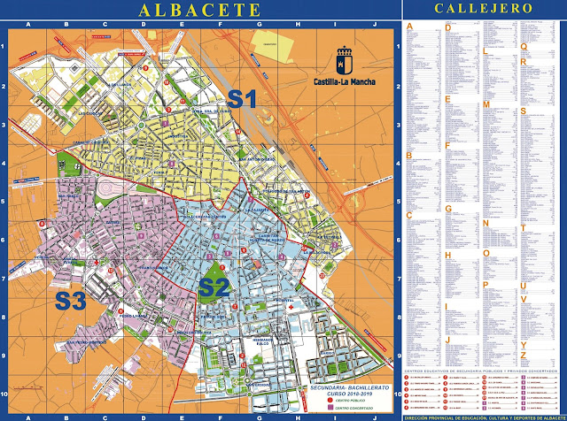 Os dejamos la división de Albacete capital por zonas para la elección del centro de Secundaria :